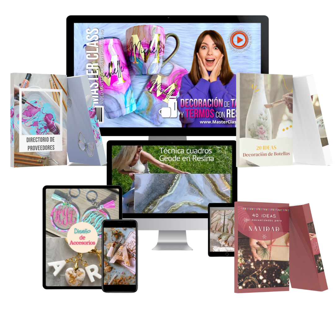 Acceso a nuestro curso con màs de 16 módulos de video Full HD, con todo el paso a paso que necesitas aprender de la Técnica de Decoración en Resina Epoxica.